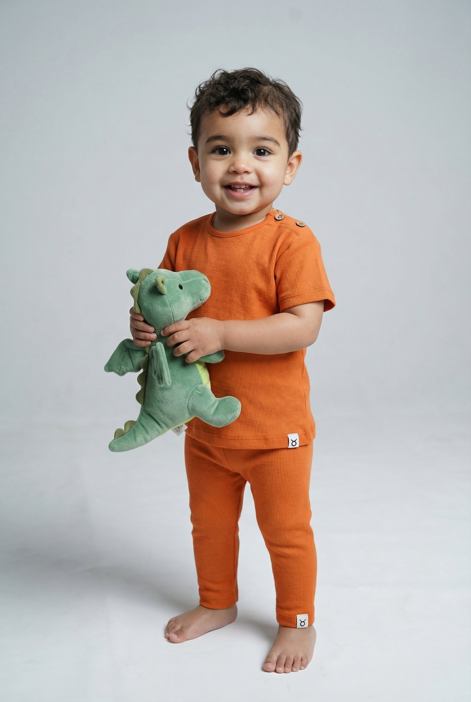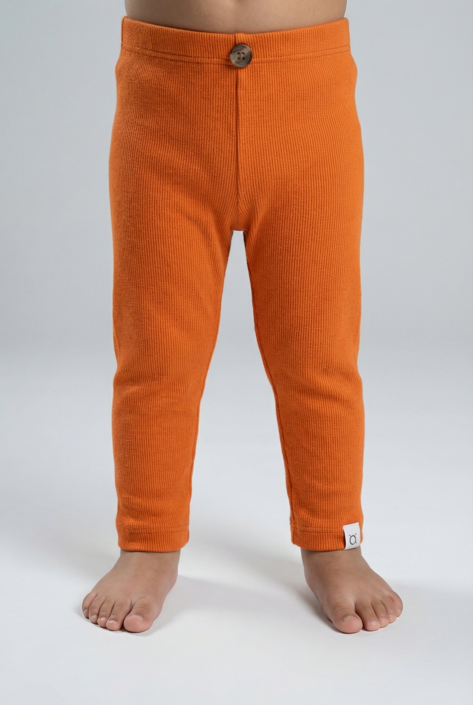 The soft rib texture gently hugs the legs without feeling tight, ensuring total freedom whether they’re crawling, wiggling, or napping. Each piece is finished with a natural organic coconut wooden button, adding a subtle, earthy detail that reflects your love for natural care.